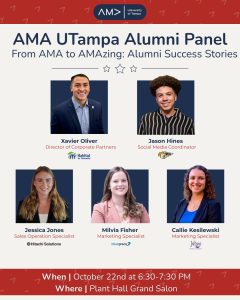 Want to hear more about how you can turn your college experiences into a thriving career? Join us this Wednesday to learn from our AMAzing UTampa alumni, and hear how AMA helped shape their professional journeys! Sign Up Here!