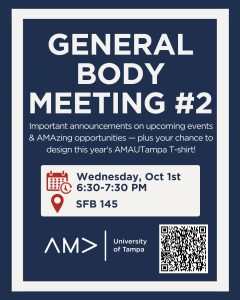 Join us for our Second General Body Meeting, where we’ll share upcoming events, important announcements, AMAzing opportunities, and team reports! From 7:00–7:30 PM, get creative in our Annual Chapter T-Shirt Design Competition—a fun way to showcase your ideas and leave your mark on this year’s AMA gear. Don’t miss out on the chance to get involved and connect with fellow members!