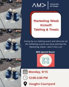 Join us to kick off Marketing Week with a fun Tabling & Treats event! Stop by our table to learn about the exciting events we have planned, connect with fellow students, and snag some free goodies. Plus, enjoy a special guest appearance from Tru Fru—come sample their delicious treats!